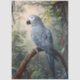 Un élégant perroquet gris africain se dresse gracieusement sur une branche recouverte de mousse dans un cadre de jungle dynamique, entouré de divers plantes tropicaux et feuillage, mettant en valeur la beauté de la vie et de la nature aviaires exotiques.
