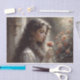 Ce portrait éthérée capture le moment intime entre une jeune femme et un rose en fleurs, rendu dans le style rêveur des chefs-d'oeuvre pré-Raphaélite. La composition présente des contrastes lumineux entre les boucles sombres fluides du sujet et sa robe blanche gossamer, tandis que les roses de corail fournissent des accents de couleur délicats contre les ombres atmosphériques brumeuses. La lumière doucement diffusée crée une lueur presque surprenante autour de la figure, suggérant un moment suspendu dans le temps. La palette sophistiquée de la pièce se tisse entre des blancs perlés, des roses sombres et des gris éthérés, créant une atmosphère de vénération romantique qui transformera n'importe quelle pièce de mobilier en point focal poétique. Parfait Couleur Appareils : Pearl White + Antique Rose Dove Grey + Blush Pink Vintage Cream + Misty Mauve Moonlight Argent + Coral Rose Ivory Blanc + Shadow Grey Captivant Éléments de design : Tons de peau Lumineuses Textures de cheveux Ethérée Effets lumineux Delicate détails rose Blur atmosphérique Dreamy Mobilier Idéal Transformations : Romantique vanité table Ecriture victorienne Ecran de salle de jardin Armoire Vintage Poitrine Boudoir Ce design excelle dans des espaces qui fêtent la beauté féminine et l'esthétique romantique. Sa composition rêvée et son ambiance feutrée en font un endroit particulièrement adapté au mobilier de chambre et de dressing, où il crée un sentiment immédiat de grâce intemporelle. Appliqué aux meubles, il les transforme en déclarations romantiques qui suggèrent la beauté raffinée de la poésie victorienne tout en maintenant l'attrait contemporain.