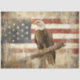 This powerful design features a bald eagle perched with timeless pride against a weathered American flag backdrop—its feathers detailed, its stance unwavering. With rich earth tones and a vintage patina, it evokes the quiet resilience of a nation and the watchful grace of freedom.