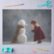 Papier Mousseline Découpage Enfant et Bonhomme de Neige Scène d'Hive