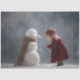 Une illustration hivernale réconfortante mettant en scène un jeune enfant portant un manteau rouge et un chapeau assorti, plaçant doucement des bras de brindilles sur un bonhomme de neige. Le bonhomme de neige porte une écharpe tricotée marron et un nez de carotte, debout dans une neige qui tombe doucement. La scène resplendit d'innocence, de joie saisonnière et de la magie silencieuse du jeu dans la neige. Parfait pour la décoration des fêtes, les histoires fantaisistes ou les collections hivernales nostalgiques qui célèbrent l'émerveillement de l'enfance.