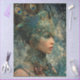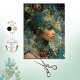 A regal woman emerges in profile, adorned with peacock feathers, gemstones, and ornate textures that shimmer against a sparkling floral backdrop. Her serene expression and elaborate costume evoke mysticism and elegance. Perfect for decoupage, mixed media, or furniture art that celebrates feminine power, fantasy fashion, and radiant detail.
