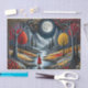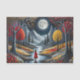 Papier Mousseline Découpage - Fille en rouge et paysage lune d'autom