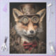 steampunk fox decoupage paper design, French Canadian gear animal panel, RHDesigns whimsical Kobi craft image, fantasy fox in mechanical attire, top hat goggles brass fox print, retro-futuristic animal mixed media, dapper fox steampunk craft supply, textured coat gearwork bunny panel, whimsical industrial animal artwork, creative storytelling fox decor piece