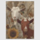 The featured artwork showcases two richly detailed goats nestled among dried sunflowers, grasses, and warm-toned florals. One goat is white with curved horns and a serene gaze; the other is reddish-brown with a white patch and expressive eyes. The background includes faint vintage script and a soft botanical palette, creating a layered, antique feel perfect for farmhouse, fall, or nature-inspired designs.