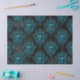 Ce design d'inspiration alloween et gothique présente des crânes turquoises/bleus dans des cadres soignés au-dessus d'un arrière - plan gris/noir de fusain. Parfait pour l'art de la découpage, l'artisanat du papier ou l'emballage de cadeaux. Assurez-vous de retirer le sac cadeau correspondant!