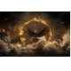 L'image présente un aigle majestueux avec ses ailes complètement étirées, placé de façon spectaculaire au centre d'un anneau lumineux et enflammé. L'arrière - plan est sombre et rempli de fumée tourbillonnante et de débris, créant une atmosphère intense et dynamique. Autour de l'aigle, plusieurs petits oiseaux sont vus en vol, ajoutant du mouvement et de la vie à la composition. Les détails complexes des plumes de l'aigle et la teinte dorée éclatante de l'anneau de feu contrastent fortement avec le fond sombre et fumé, ce qui rend la scène à la fois puissante et visuellement frappante. Bague flamboyante majestueuse d'aigle, ailes puissantes d'aigle éteintes scène, image rayonnante d'aigle doré, décor fumé spectaculaire avec aigle, scène dynamique d'aigle tourbillonnant de fumée, atmosphère enflammée avec aigle envoûtant, aigle entouré de flammes brillantes, composition intense d'aigle et d'oiseaux, aigle royal envoûtant