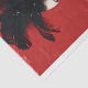 Cette étonnante gravure d'art saisit l'essence de l'élégance dramatique et de la mode avant-gardiste, présentant un modèle dans un ensemble méticuleusement travaillé qui mêle influences historiques et design contemporain. L'image raconte une histoire d'individualité audacieuse et de haute mode, en faisant une oeuvre d'art extraordinaire et spéciale. La tenue du mannequin est un chef-d'oeuvre visuel, avec une riche tapisserie de textures et de motif. Les éléments dominants de sa tenue comprennent une cape noire luxueuse ornée de plumes volumineuses, créant un sentiment de profondeur et de mouvement. Cette cape noire contraste magnifiquement avec le tissu complexe de brocart rouge et noir qui forme la partie inférieure de son vêtement. Les motifs audacieux et ornés du brocart évoquent un sentiment d'opulence historique, ajoutant une couche de sophistication à l'ensemble. Ses manches sont une oeuvre d'art en elles-mêmes, avec un tissu blanc délicat orné de broderies rouges complexes et d'applications florales tridimensionnelles. Ces détails apportent une touche de fantaisie et d'élégance, rehaussant la texture globale et l'intérêt visuel de la tenue. Le haut collier, décoré d'un mélange de tissus noir et blanc, encadre son visage et ajoute un air de sophistication royale. La pièce maîtresse qu'elle porte est à la fois dramatique et élégante, avec un éventail de plumes en noir et blanc qui s'étendent vers le haut, ajoutant de la hauteur et un parfum théâtral à son look. Les plumes sont arrangées astucieusement pour créer un sens du mouvement et du drame, complétant parfaitement le reste de son ensemble. Son maquillage est audacieux et saisissant, avec des yeux sombres et fumés qui ajoutent de l'intensité à son regard et des lèvres rouges profondes qui complètent le look avec une touche de glamour classique. Son expression et les détails méticuleux de sa tenue créent une présence puissante et captivante. Ce qui rend cette impression d'art vraiment spéciale est sa capacité à mêler des éléments de mode, d'histoire et d'imaginaire dans une composition cohésive et visuellement saisissante. L'arrière - plan rouge vif augmente l'intensité des couleurs et des textures, rendant chaque détail remarquable avec une clarté vive. Le profil de la mannequin et l'artisanat complexe de sa tenue et de ses accessoires créent un récit qui invitation le spectateur à imaginer l'histoire derrière l'image.