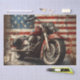 Papiers en tissu de découpage paysager. Une moto vintage à la peinture écaillée trône fièrement devant un drapeau patiné américain orné de rayures rouges et blanches. La combinaison de la moto âgée et du drapeau en détresse crée une image puissante d'Americana, évoquant un sentiment de liberté, d'aventure et de nostalgie. Cette scène capte l'essence de la moto classique et de l'esprit patriotique, en faisant une photographie frappante et évocatrice.