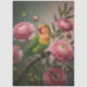 The artworks combine realistic details with a soft, dreamlike atmosphere and decorative botanical elements.