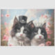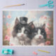Papier Mousseline Découpage noir blanc Chat Couple Fleurs de terrain