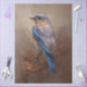 Papier de découpage représentant un oiseau bleu dans des tons feutrés.