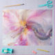 L'image est une peinture vibrante et abstraite qui semble représenter une fleur en fleurs. L'oeuvre présente un mélange tourbillonnant de couleurs, rose, violet, jaune et blanc, avec des détails et des textures complexes qui lui donnent un aspect dynamique et presque tridimensionnel. Le centre de la fleur est orné de ce qui ressemble à des gemmes ou des gouttelettes étincelantes, ajoutant une touche d'élégance et de brillance à la pièce. Les lignes fluides et le mélange des couleurs créent un sens du mouvement et de l'énergie, rendant l'image visuellement captivante et intéressante. abstraite peinture à fleurs, couleurs vibrantes, rose violet jaune blanc, détails complexes, apparence tridimensionnelle, pierres précieuses, art élégant, texture dynamique, sens du mouvement, visuellement captivant, RHDesigns par 2chattychicks