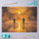 L'image montre deux personnes qui pêchent dans un environnement serein et brumeux au lever ou au coucher du soleil. La scène est magnifiquement éclairée par des tons chauds et dorés qui se reflètent dans l'eau, créant une atmosphère paisible et pittoresque. Les silhouettes des gens et des arbres environnants ajoutent à la profondeur et à l'intérêt de la composition, ce qui en fait un moment captivant et paisible capturé dans la nature. scène de pêche, environnement serein, matin brumeux, pêche au lever du soleil, pêche au coucher du soleil, teintes dorées chaudes, réflexion d'eau, atmosphère paisible, paysage, moment paisible, photographie de la nature, beauté pittoresque, activité extérieure, pêche détente.
