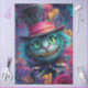 psychedelic Cheshire Cat fantasy art, Alice in Wonderland decoupage sheet, whimsical cat printable for crafts, surreal feline top hat design, colorful Wonderland themed artwork,
