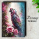 Ce portrait saisissant capture un perroquet majestueux aux riches teintes bordeaux et indigo, sur fond de somptueuses atmosphères roses et éthérées. L'oeuvre d'art démontre une maîtrise exceptionnelle dans sa représentation du plumage complexe de l'oiseau, qui passe des plumes de cou profondes à des revêtements d'ailes bleu métallique, créant un jeu fascinant de tons chauds et cool. La composition atteint une parfaite harmonie entre la présence dramatique du perroquet et la douceur romantique des roses profondes en pleine floraison. Chaque plume est rendue avec une précision extraordinaire, créant une texture sublime qui semble presque tactile, tandis que les roses fournissent un contrepoint luxuriant avec leurs pétales veloutés et de riches gradients. Parfait Couleur Jumeaux : Bourgogne avec orage bleu Rose or avec ardoise gris prune profonde avec perle blanc Vintage mauve avec marine rose antique avec fusain Éléments de design captivants : Lumière et ombre dramatiques Détails Plumes méticuleuses Transitions de couleurs riches Profondeur atmosphérique Authenticité botanique Idéal Mobilier Transformations : bureau victorien Style Empire Table latérale Queen Anne Regency panneaux de bibliothèque Cette conception excelle dans la création de points focaux sophistiqués qui commandent l'attention tout en maintenant un air d'élégance mystérieuse. La riche palette de couleurs et la composition dramatique de l'oeuvre la rendent particulièrement adaptée aux pièces qui exigent une présence tout en préservant le raffinement. Appliquée à travers la découpage, la pièce transforme des meubles ordinaires en pièces d'art extraordinaires qui pourraient être confondues avec des oeuvres peintes à la main. Le design est particulièrement efficace dans les espaces qui célèbrent le dialogue entre la couleur dramatique et la sophistication subtile. Parfait pour transformer les héritages de famille ou les trouvailles vintages en chefs-d'oeuvre contemporains, cette oeuvre relie l'illustration naturaliste classique et les arts décoratifs modernes, créant des pièces qui deviennent la pièce maîtresse de toute pièce bien aménagée.
