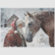 Santa with horse winter scene, rustic barn Christmas wood round, snowy Santa Claus holiday print, festive equestrian snowglobe insert art, RHDesigns seasonal crafting surface collection, handmade Christmas wood round gift, peaceful Santa and horse design, snowy cabin holiday illustration disc, 8.5 inch circular saw round, nostalgic winter Santa Claus artwork.