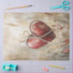 L'image montre une peinture d'un coeur rouge valentin enveloppé d'un morceau de ficelle attaché dans un arc. Le coeur semble patiné et texturé, avec un aspect rustique et vintage. L'arrière - plan se compose d'un champ avec de grandes herbes et du blé, peint dans des tons terre et muets. La composition générale donne une sensation de chaleur et de nostalgie, le coeur symbolisant l'amour et les éléments naturels ajoutant une touche de simplicité et de sérénité. Peinture de coeur rouge de Valentine rustique, coeur enveloppé de ficelle, coeur vintage et texturé, champ avec de hautes herbes, tons terreux muets, chaleur et nostalgie, amour et nature, simpliste et serein.