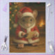 red santa mouse writing letter, whimsical mouse cozy fireplace scene, festive animal art decoupage paper, vintage mouse Christmas tree glow, RHDesigns holiday creature mixed media, red fur trim santa outfit, warm fire mouse Christmas design, parchment quill mouse santa art, holiday mouse whimsical crafting supply, Christmas mouse vintage charm artwork