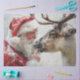 Santa Rudolph north pole, Santa and reindeer winter scene, magical Christmas decoupage paper sheet, snowy holiday collage art base, festive mixed media design layer, heartwarming seasonal furniture art print, vintage Santa Claus craft paper, reindeer and snowflakes holiday texture, warm nostalgic Christmas decor accent, whimsical holiday DIY project sheet, classic red suit winter artwork