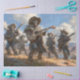 This surreal panel captures five skeleton cowboys mid-performance in a sweeping desert landscape, each strumming guitars and banjos with ghostly flair. Dressed in tattered Western gear—wide-brimmed hats, boots, and bandanas—they stand on a grassy plateau surrounded by mesas, rock formations, and a winding river. A lone white bison watches from the distance, adding depth and mystery to the scene. With dramatic clouds overhead and a haunting sense of rhythm, this piece blends outlaw folklore with supernatural storytelling.