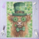St. Patrick’s Day decoupage paper, Highland cow artwork, Irish holiday décor design, shamrock background, whimsical green cow illustration, farmhouse St. Paddy’s Day craft paper, festive Irish theme decoupage sheet, mixed‑media holiday art, furniture art supplies, bold green St. Patrick’s Day design, rustic cow illustration.