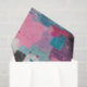 This bold and bubbly nutcracker bursts with personality—painted in vibrant pink, turquoise, and gold, with a cheeky grin and heart-shaped eyes twinkling with starry sparkle. A large blue crown with pink accents tops the look, while gold epaulettes, buttons, and belt add regal flair. The textured background of splattered pinks, blacks, and whites creates a dynamic winter wonderland, perfect for holiday trays, furniture panels, or layered mixed media projects.