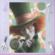 A curious storybook character studies a vintage pocket watch while dressed in a tall green hat and richly textured coat. The expressive face and dramatic pose give the figure a sense of urgency and personality, as though time itself is slipping away in a strange and whimsical world. Soft colors and playful design elements add charm to the imaginative scene, creating a fantasy portrait filled with storytelling energy and theatrical character.