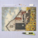Une image captivante qui montre le charme d'une grange rouge patinée et d'un vieux camion blanc au milieu du jaune vif des tournesols sous un ciel bleu nuageux. Ce paysage rural serein contraste magnifiquement le charme rustique des structures artificielles avec la beauté vibrante de la nature, évoquant un sentiment de nostalgie et d'intemporalité.