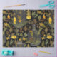 Design fantastique pour tout amateur de plante. Ce papier tissu de qualité est idéal pour le découpage ou l'emballage cadeau. Ce design présente des plantes botaniques avec des terrariums en verre parsemés de bouteilles. Couleurs d'or et de pop verte sur l'arrière - plan noir. Vous apprécierez son décor de cottage.