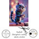 whimsical grinning fantasy cat, magical tea party cat, enchanted storybook cat illustration, fantasy woodland tea scene, mischievous smiling cat art, whimsical fantasy animal illustration, storybook tea party artwork, magical whimsical cat character, fantasy decoupage craft paper, wonderland inspired fantasy artwork