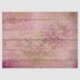 Un motif à défilement rose et or recouvre un arrière - plan en bois rustique en détresse. Idéal pour l'art de la découpage, l'artisanat du papier ou l'emballage de cadeaux.