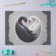 Des cygnes élégants qui forment un coeur ensemble. Un cygne est majestueusement blanc et exsude la grâce, tandis que l'autre est en noir profond et a une aura mystérieuse autour. Ils symbolisent l'amour et la connexion entre deux âmes.