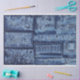 Papier Mousseline Design architectural bleu vintage