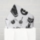 Objets d'Halloween dessinés sur papier, puis tracés dans Illustrator pour créer motif.