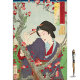 Titre complet : Deuxième mois; Tei de Shinbashi par un arbre de prune à Umeyashiki Tsukioka Yoshitoshi était un artiste japonais du 19ème siècle, largement reconnu comme le dernier grand maître du genre ukiyo-e de l'impression et de la peinture de blocs de bois. Son courage, sa vision et sa force de caractère ont donné à ukiyo-e une nouvelle génération de vie et l'ont illuminée d'une dernière explosion de gloire. Il est également considéré comme l'un des plus grands innovateurs de la forme. Sa carrière s'étend sur deux époques : les dernières années de la période Edo au Japon, et les premières années du Japon moderne après la Restauration Meiji.