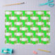 Dessin de dinosaure. Feuilles de papier de tissu décoratif personnalisées. Arrière - plan motif vert et blanc. Idée cadeau pour les amateurs de dinosaures de tous âges.