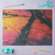 Un arrière - plan abstrait frappant qui éclate avec des dégradés de couleur néon. Des fissures noires minces, des éclaboussures d'encre et une tranche de veinures métalliques dorées fracturées à travers les champs de couleur avec un chaos contrôlé, créant une tension fascinante entre l'élégance et la rébellion.