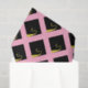 Cadeau de graduation créatif et tissu de décoration de fête de grad avec motif de bonnet de graduation noir et or sur arrière - plan rose.