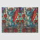 Ce papier de tissu en faux verre coloré présente des dragons turquoises et des roses rouges. Ceci peut être coordonné avec le cadeau et les sacs à vin assortis.