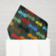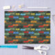 Un groupe d'ailes de dragons aux couleurs noir, marron, rouge, orange, jaune, bleu et vert s'ouvre sur les ailes sur un fond vert foncé et profond qui grimpe vers le haut. Les dragons sont dessinés dans un style de tatouage tribal.