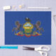 Ce dessin présente le drapeau de l'État de Pennsylvanie, officiellement connu sous le nom de Commonwealth de Pennsylvanie. Le drapeau a été adopté pour la première fois en 1778 et il présente les armoiries de la Pennsylvanie, un emblème officiel de l'État. La devise de l'Etat est aussi affichée : "Vertu, Liberté et Indépendance". Perché au-dessus des armoiries est un aigle chauve, qui est destiné à représenter la loyauté de la Pennsylvanie envers les États-Unis. La Pennsylvanie est en effet l'un des 13 premiers États fondateurs de l'Union. Les deux villes les plus peuplées de l'état de Pennsylvanie sont Philadelphie et Pittsburgh. La capitale de l'État est Harrisburg.