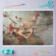 Papier Mousseline Dusty Blue & Red Floral, Portrait Art & Flamant ro