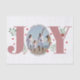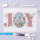 Dusty rose rose Joy avec baies papier de tissu photo de Noël. Il montre le mot "JOY" avec des baies rouges et de la verdure tandis que au lieu de la lettre "O" il y a votre photo.