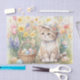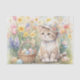 This charming tissue paper design showcases a delightful springtime scene. It features a cute cat wearing a springtime hat, alongside a basket overflowing with colorful Easter eggs and vibrant spring tulip and daffodil flowers in the background. The artwork is a watercolor-inspired illustration, created using AI technology and designed by Susang6.