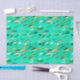 Papier Mousseline École de Poisson, Aqua, Vert et Or