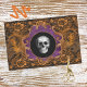 Ce design éffrayant mais élégant présente un crâne effrayant, encerclé de noir et entouré d'un cadre violet et orange. Des roses damassés, feuille et noirs en dentelle ornent l'arrière - plan. La vue est soignée mais frappe définitivement une ambiance gothique ou haloween.
