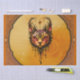 Elégance ornementale : Portrait d'un chat. Les yeux rouges expressifs attirent immédiatement l'oeil. Le front du chat est décoré d'un motif délicat et ornemental qui rappelle des lignes courbes et des motifs floraux délicats, donnant à l'image une touche élégante. La palette de couleurs est principalement chaude, avec des tons d'orange vif et d'or chatoyant qui rayonnent de chaleur et de vibrations.