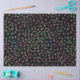Un féerique jeu d'holographes confetti iridescente dots d'art noir, parfait pour des événements spéciaux, décorations de fête, et des célébrations uniques. Doté d'une collection de scintillants de faux parties scintillant chatoyants, de pois holographiques en rose, violet, menthe, vert, bleu, turquoise, jaune pastel couleurs, effets de dégradé métallique brosse points motif, sur un arrière - plan noir.