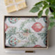 Un design élégant comprend des ornements d'arbre de Noël qui raviront vos amis et parents qui reçoivent des cadeaux emballés avec ce beau papier de tissu. C'est un délicat motif d'aquarelle de vacances vintages. Ils sont mélangés avec de la verdure de Yuletide et des baies rouges. Le rouge muet, le bleu clair et la crème dominent dans les couleurs des ampoules.